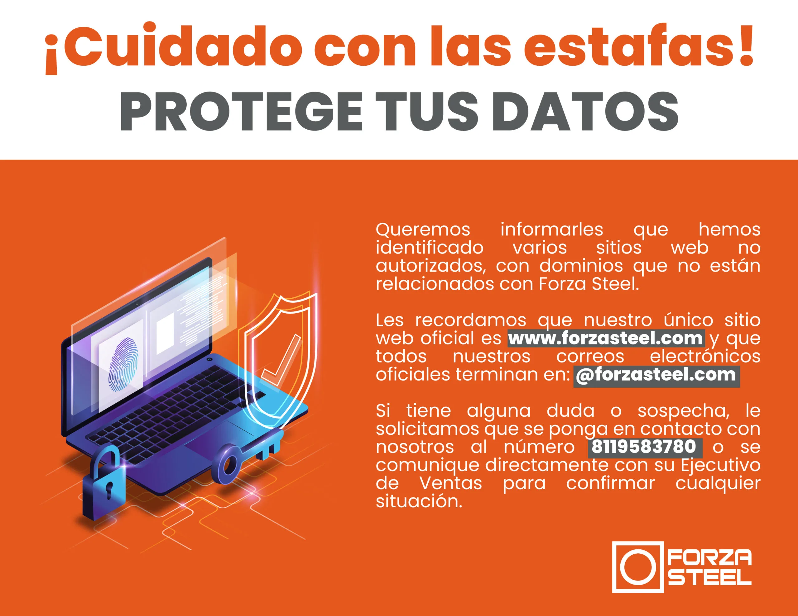 Nuestros correos oficiales de contacto tienen la terminación: @forzasteel.com